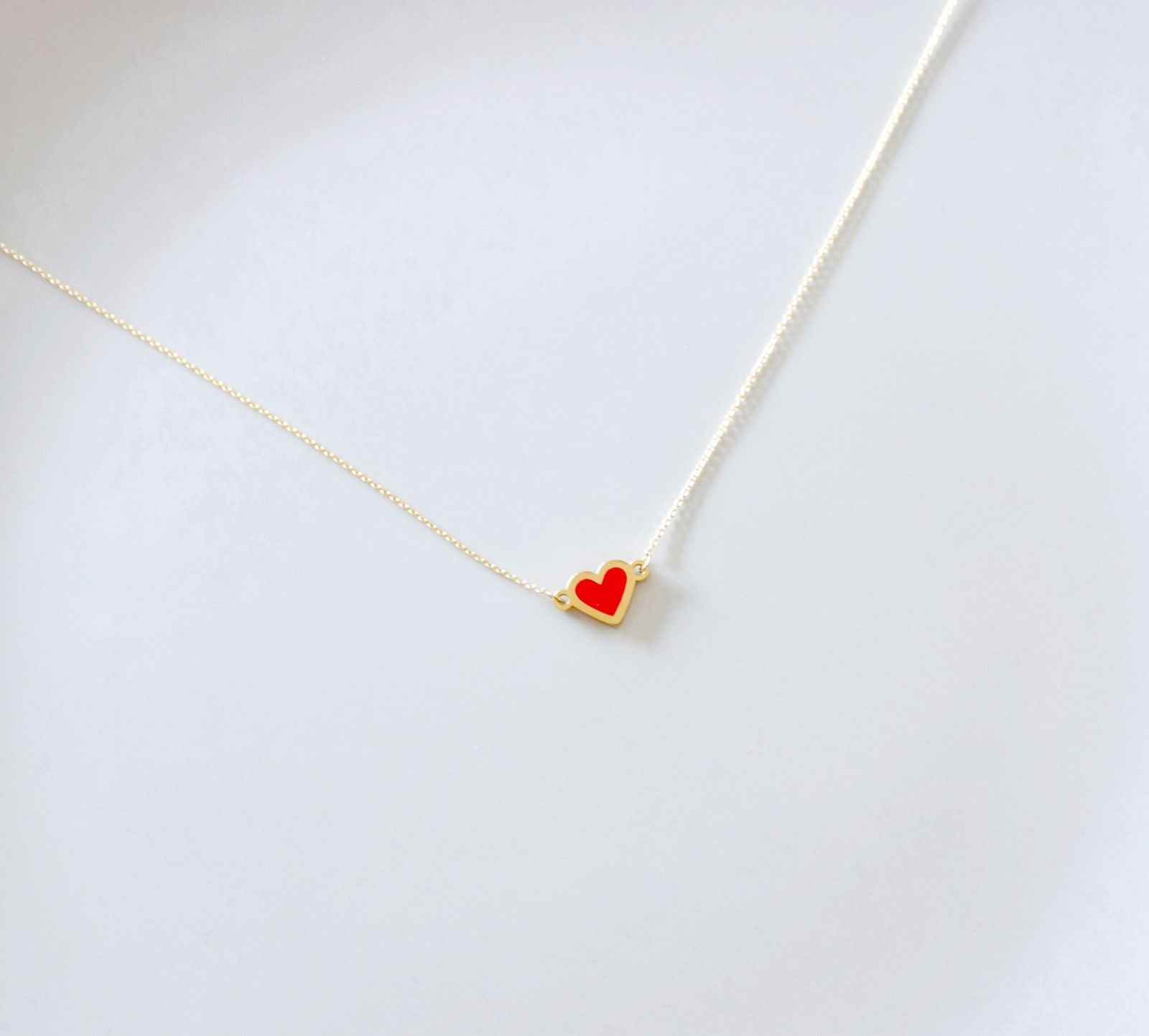 Delicate enamel heart pendant necklace. Simple, elegant and meaningful. Capture the essence of Valentine's with this special piece.