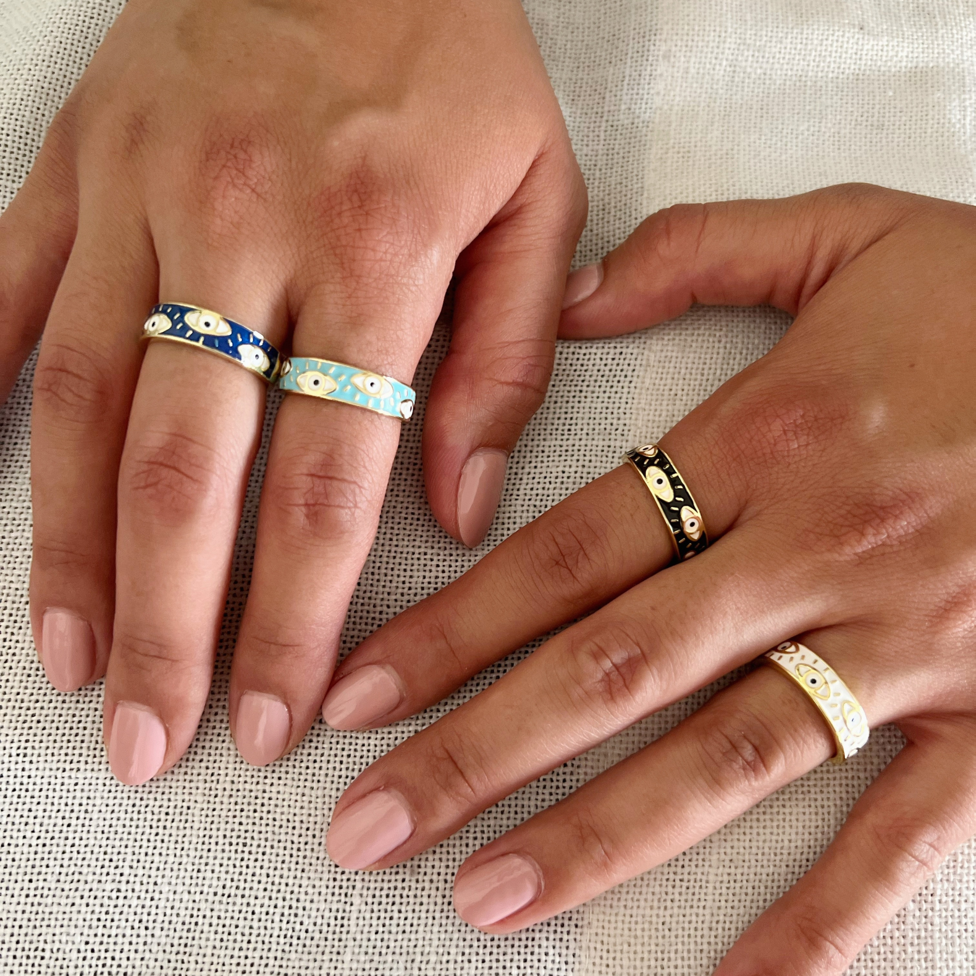 Want to repel bad energy in style? Here's our bestseller colored evil eye rings. Adjustable to your finger size. A fashionable piece and a must-have in your accessories box.