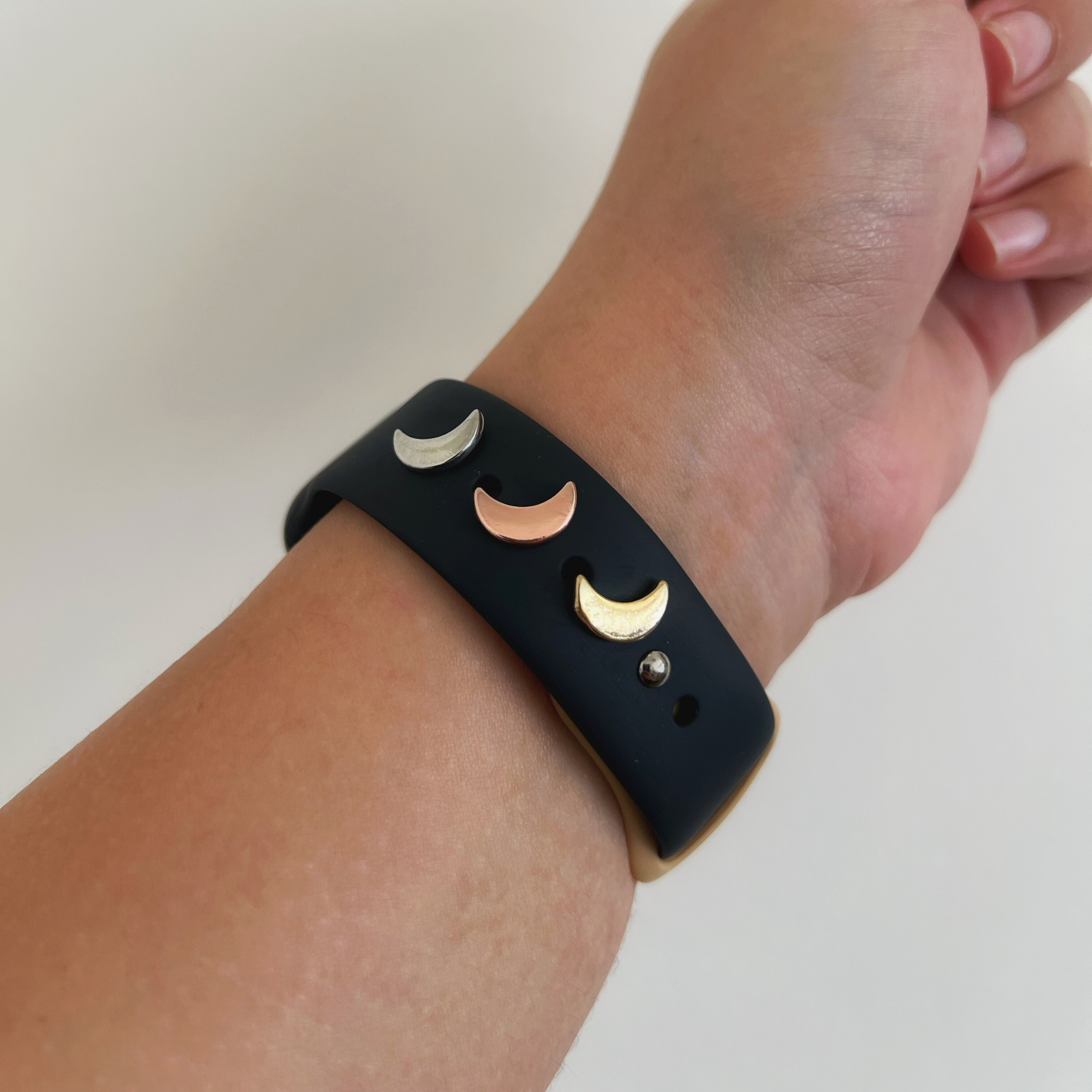 The Symbol Apple Watch pin is placed where the buttons go. This collection adds a dynamic look to the watch with a stunning floating element.