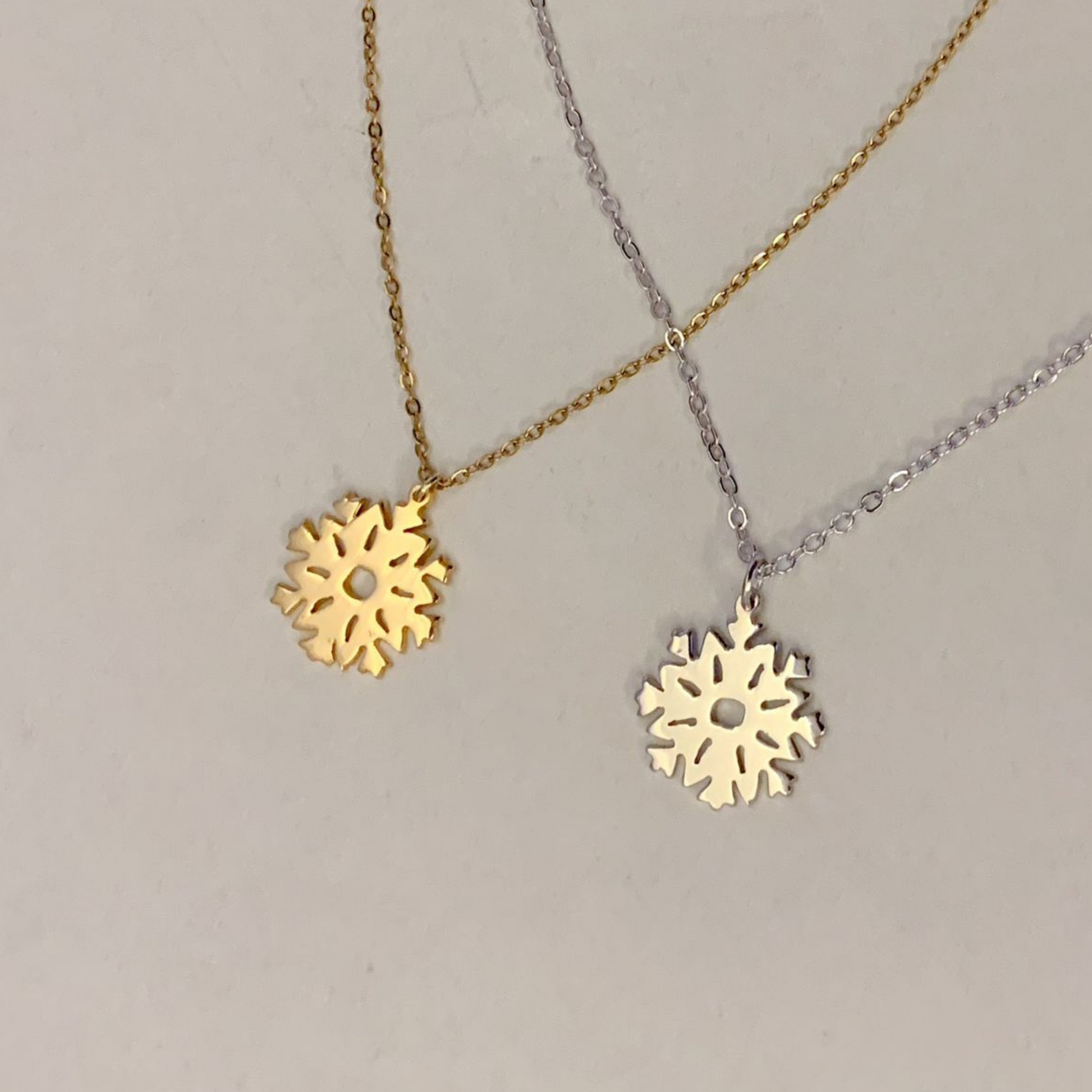 The modern look of our new origami-inspired necklaces is undeniable. This snowflake-shaped necklace could white or yellow gold-plated. A very spirited addition to any jewelry box! Could white or yellow gold-plated.