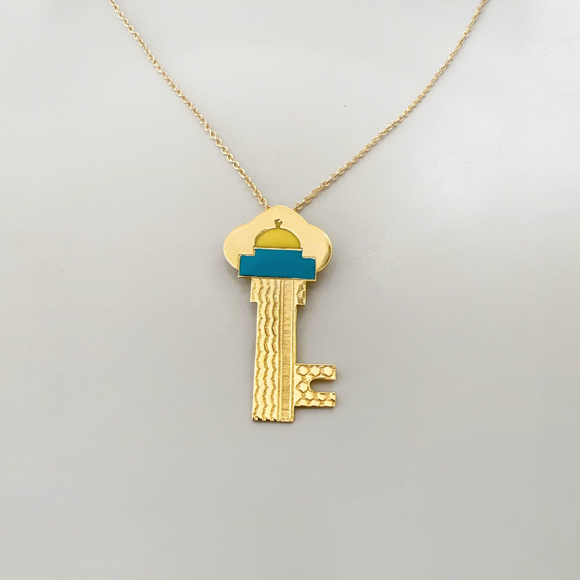 A key we hold in our hearts. The Palestinian key symbol of Nakba. Al-Aqsa Mosque on the upper part and the classic Kufiyah on the lower. A very meaningful piece!